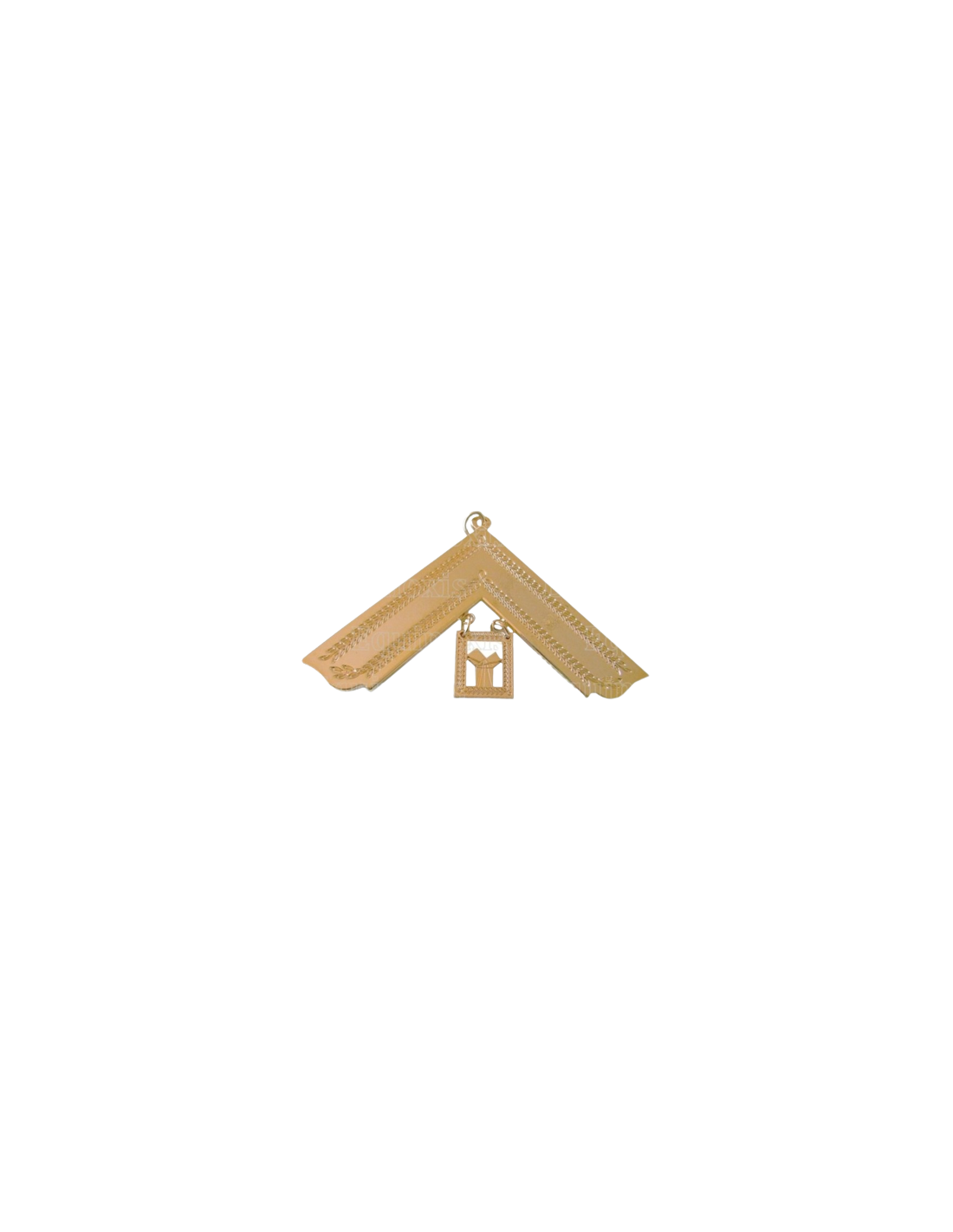 3Le bijou passé Vénérable maître (équerre + Pythagore) doré (2) représente l’équerre symétrique du Vénérable Maître. L’équerre est complétée par le tracé géométrique du théorème de Pythagore.