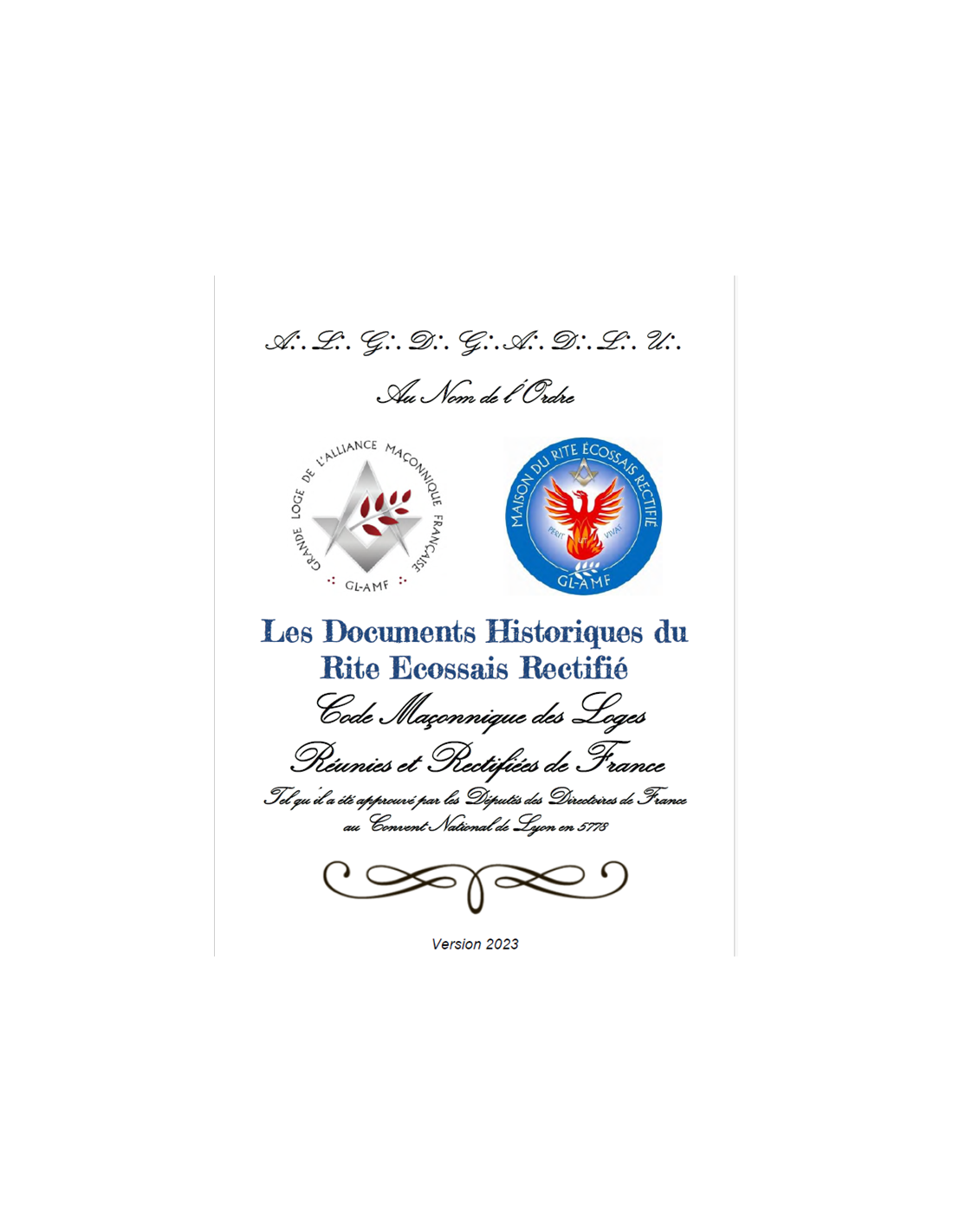 Rituel Maître RER (Rite Ecossais Rectifié)