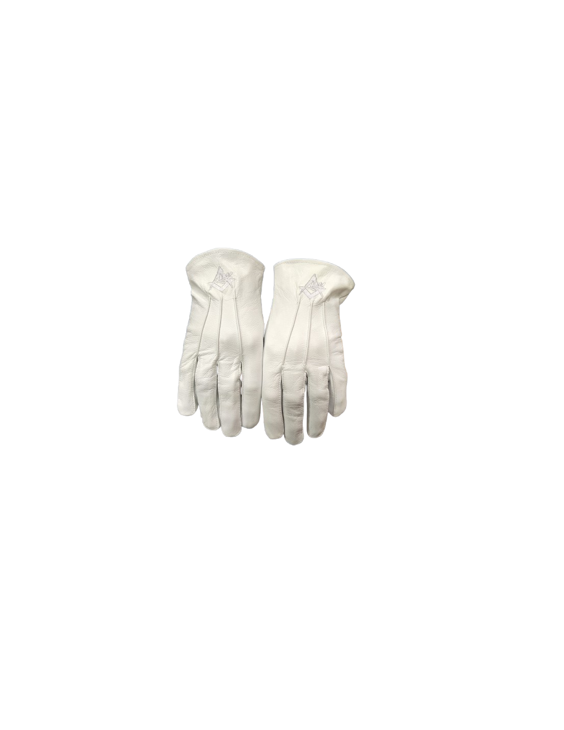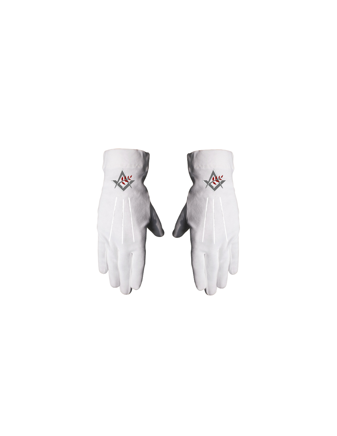 Complétez vos tenues de cérémonie maçonnique avec cette paire de gants blancs broderie alliance (coton ou cuir). Ces gants sont exclusivement conçus avec du coton et du cuir souple de qualité, gage d’un port confortable.