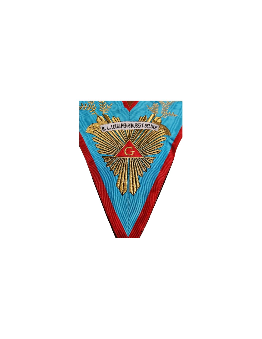 Collier / Sautoir de Précedent Vénérable RF (Rite Français) brodé au nom de la Loge