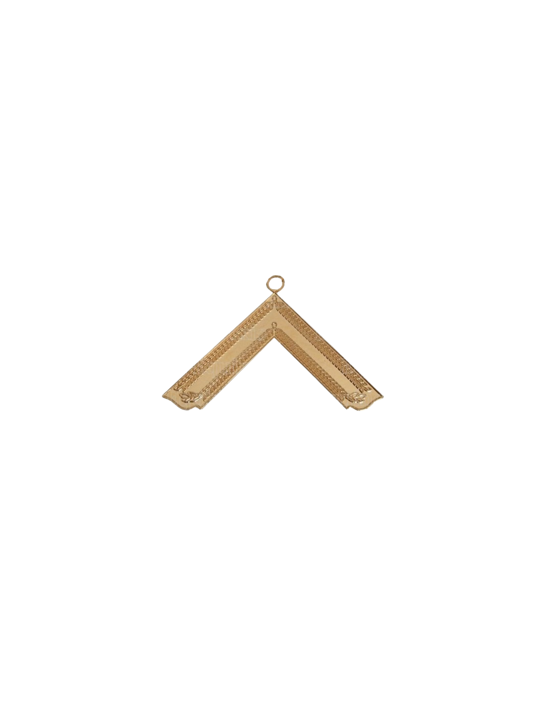 3Le bijou passé Vénérable maître (équerre + Pythagore) doré (2) représente l’équerre symétrique du Vénérable Maître. L’équerre est complétée par le tracé géométrique du théorème de Pythagore.