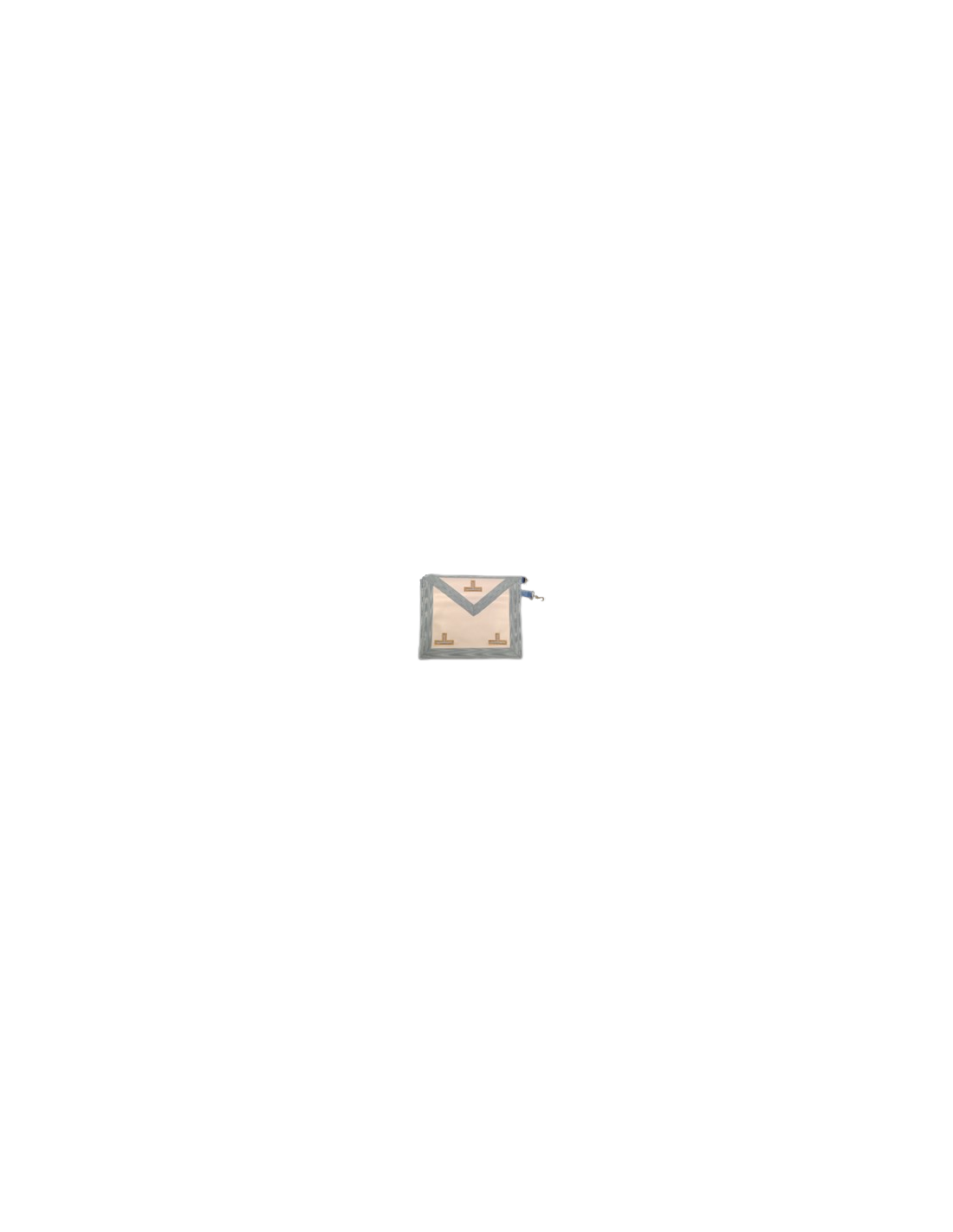 Tablier de Vénérable Maître CUIR  RER 3 Taus dorés, Tissus moiré bleu ciel  Dos bleu ciel avec poche.